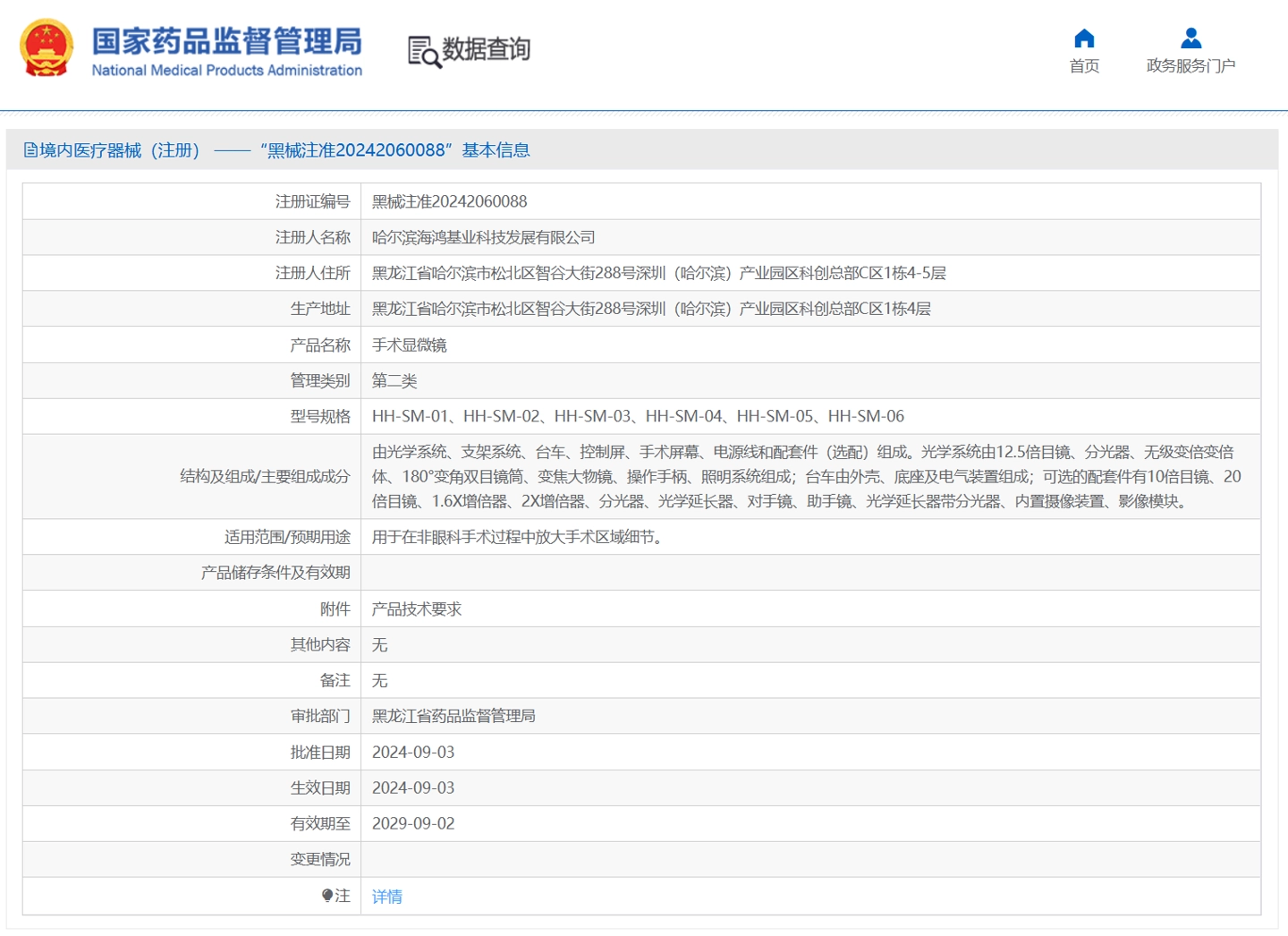 IT之家 11 月 12 日音问,据哈尔滨日报当天报说念,哈尔滨海鸿基业科技发展有限公司(海鸿基业)自主研发的国内首款高倍率手术显微镜赢得医疗器械注册证,具备上市销售阅历。这秀美着海鸿基业一举冲破海外把持,成为国内第一家掌合手高倍率手术显微镜时代的企业,罢了国产替代。 据海鸿基业副总司理栾鸿雁先容,夙昔,国产手术显微镜的光学倍率大多在 20 倍傍边,无法承诺现在高端手术场景的使用需求。海鸿基业研发的医用手术显微镜光学倍率可达 60 倍。现在,人人光学高倍率手术显微镜市集基本由蔡司、徕卡和奥林巴斯 3 家海外企业把持,海鸿基业研发的这款产物可与上述三大企业高端产物相比好意思。 据先容,海鸿基业研发的这款高端手术显微镜可用于淋巴外科、骨科、神经科和口腔科等手术科室。来岁,这款拓荒有望在国内医疗系统大范围使用。 此外,为处理临床手术中淋巴系统“看不见”“找不到”的清贫,海鸿基业还研发了激光淋巴成像检讨仪,不错用来开展 0.1 毫米淋巴管缝合的超等显微外科手术,这亦然现在国际上独一具有淋巴液流速测定、寻找功能性淋巴管的手术导航拓荒,填补了国际空缺。 IT之家查询公开尊府获悉,哈尔滨海鸿基业科技发展有限公司位于深哈产业园,是一家“专精特新”企业,建筑于 2012 年,注册老本 2000 万元,共恳求专利 39 项、软件文章权 16 项,其中发明专利 18 项。 国度药品监督管束局官网泄露,哈尔滨海鸿基业科技发展有限公司的“手术显微镜”产物于 9 月 3 日获批医疗器械注册证,用于在非眼科手术经由中放大手术区域细节。